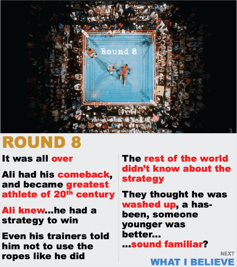 Finally, unique here is the CEO’s handwriting, digitized, to show how his thoughts evolve from a ‘back of the napkin’ idea, to a richer ‘whiteboard’ view, and eventually to an integrated ‘company strategy’ depicted in classic technology architecture (not shown). This roadmap is the unifying force of the conference, from workshops and training, to technology demos, product user certifications, and analyst interviews.