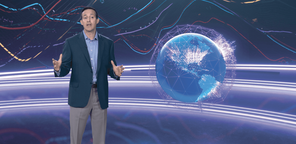 Footage is later enhanced using augmented reality (AR) and extended reality (ER) technologies. Dramatic widescreen animations, interactive graphics, and ‘on-stage’ elements (e.g., reflective surfaces and an LED screen rising out of the ‘floor’ with picture-in-picture video) maximize use of the AR and ER toolkits.